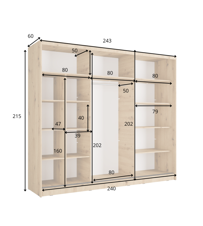 | Aluna 13 | Szafa 3D przesuwna z lustrem (18 lamelek) | 248 | 215 | 62 | 5 | 232,8 |